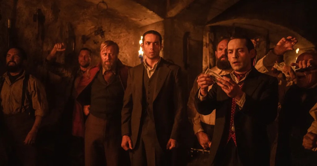 Pitt’s performance at the tail end of the film, as he realizes his time is up as a star, is the most striking, particularly as they contrast with the bravado displayed at the beginning of the movie. Robbie delivers a star-making turn worthy of Katherine Hepburn as the live wire LeRoy who always feels like she’s performing (even privately). And in a film littered with excellent performances from characters actors such as Jean Smart and Eric Roberts, Tobey Maguire steals the show. It’s fun to see his infectiously dorky and puckish charm being filtered through a disarming mobster who has a rancid idea of entertainment.