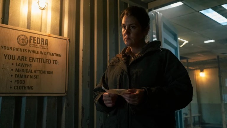 Once that society breaks down, there are only a few of us who carry the memory and meaning of that piece of art. There was a slightly melancholic edge when Joel says to Ellie that Hank Williams was before his time. It truly made me think of the title of the show and video game insofar as there are very few of us who carry the memory of works of art. The same could be said of human laws. There’s a scene in the middle of the episode where a woman called Kathleen is interrogating a medical doctor. She lists basic human values from a relief group. Like the point with the Hank Williams song, it reminded of just how fragile the constructs of human law can be when society breaks downs. They’re not fixed and are only carried as maxims by a few of us.