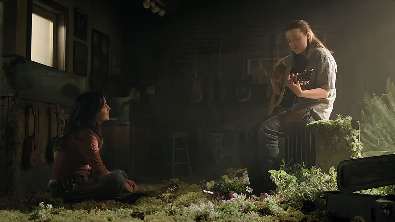 This aspect is juxtaposed with Ellie and Dina’s blossoming relationship. While I initially thought the pair stumbling on decayed Pride flags and decorations was a little overt. However, on reflection it was a good reminder of how much this relationship means to the LGBTQ + community. And in its unravelling, it’s endearing as much as it’s sweet. Like the best onscreen relationships, the emotional truth comes when one of the pair lets their guard down. And in this regard, Isabela Merced strikes a chord in her reaction to Ellie’s guitar playing as much as expressing the truth about her sexuality.