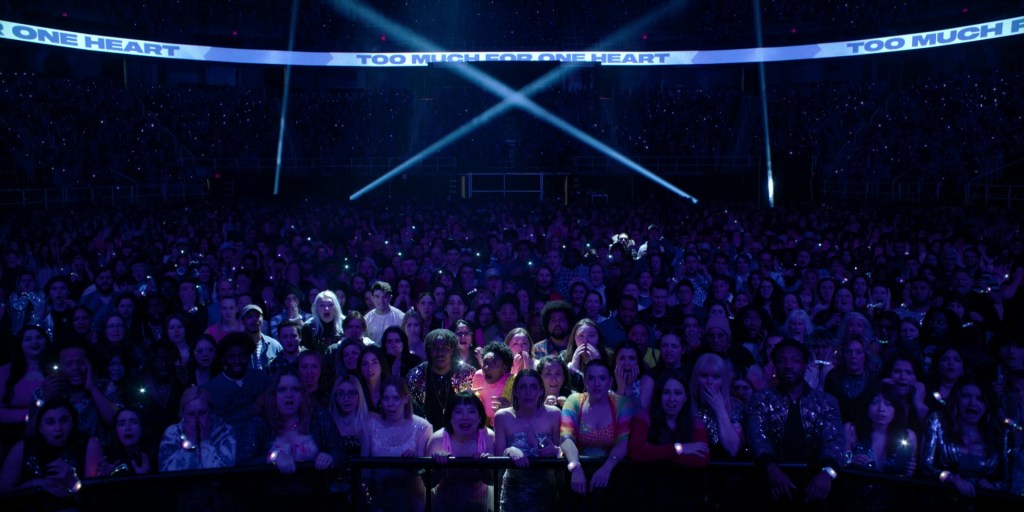 The fixed medium shot of the audience at the end of Smile 2 really gives the viewer a lot to think about. On the one hand, it’s meta insofar as it’s referencing the audience quite directly, making us a part of the concert. It also mirrors and complements the introduction to Skye (Naomi Scott) via a fixed shot of a television where we see the pop star’s interview with Drew Barrymore. In fact, one could argue that the shot critiques reaction culture by emphasizing how it’s less about the event in question than our emotions during it.
