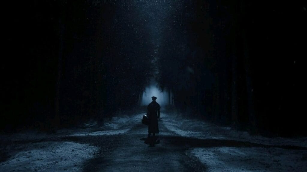 Eggers pairs his astute screenplay and themes with a haunting direction that still lingers with me now- whether it’s operatic close-ups where characters express forbidden truths or a dreamlike sequence involving a shadow of Orlok’s hand engulfing the entire central village. Eggers understands the cadence of nightmares in ways few modern directors do. He does this by depicting the sense of randomness from stumbling upon ordinary objects/places and how they can be prophetic in speaking truths to our fears and concerns. Take an early scene where Thomas comes across a coach in the snow. At once, it’s a source of relief as it relives the tail end of his journey. But it also represents how he’s being led down the garden path to torment and pain.